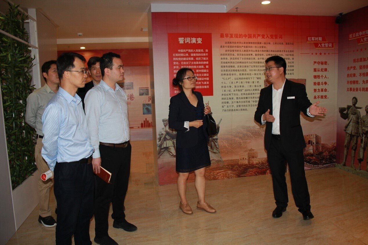 座談結束后,劉國強副校長引領考察團參觀我校綜合樓,多功能學術報告廳等,考察了我校的紅色文化展覽館及AR紅色教學體驗館等特色辦學設施。在聽取了我校的辦學經驗及參觀了我校基礎配套建設后,考察組對我校的辦學及管理模式一致給予高度評價。雙方的交流座談從各自不同的領域經驗進行了詳細的介紹與推薦,雙方表示在今后的工作中多加強交流與合作,共同把弘揚井岡山精神、傳承紅色文化做大做強。