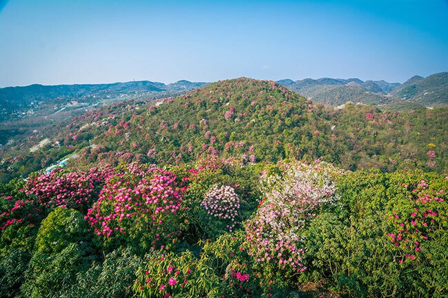 井岡杜鵑久負盛名,目前已查明的井岡山杜鵑科植物達32種,有開白花的江西杜鵑,開紅花的映山紅,開粉紅色花的鹿角杜鵑、云錦杜鵑,開粉紅至白花的猴頭杜鵑,開淡紅紫色花的紅毛杜鵑,以及井岡山所特有的珍稀樹種――開淡紫紅色花、具有香味的井岡山杜鵑等。人間四月杜鵑紅,最紅不過井岡山。屆時,漫山遍野的井岡杜鵑將肆意綻放,等著四海賓朋前來觀賞。