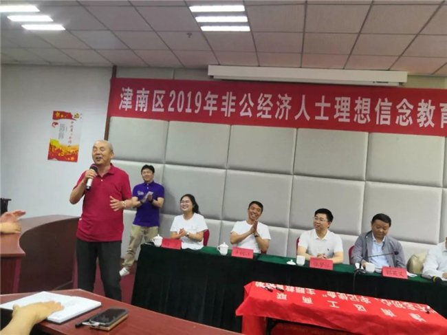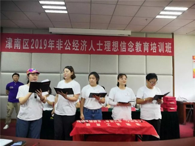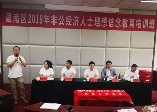 6月11日上午9時,津南區2019年非公經濟人士理想信念教育培訓班在雄壯的國歌聲中隆重開班。我校副校長劉國強致歡迎辭。津南區委統戰部副部長、區工商聯黨組書記張夢懷作動員講話。津南區工商聯副主席郭英義、辛樹江,各鎮、開發區、長青、農業園區負責同志和非公經濟代表人士共50人參加了此次培訓。