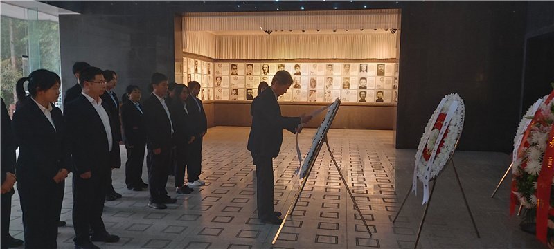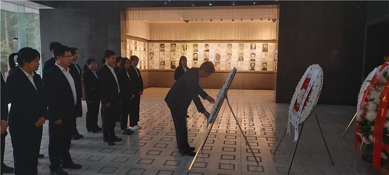 全體人員認真聽取了教務處唐雅莉老師對井岡山革命斗爭史、革命烈士英勇事跡的生動講述。隨后,在井岡山市紅色文化培訓中心副校長劉國強同志帶領全體教職人員整齊列隊走向烈士紀念堂瞻仰大廳,向革命先烈敬獻花圈。劉校長緩步向前,神情凝重地整理挽聯,挽聯上“革命先烈永垂不朽”表達了培訓中心全體教職人員對革命先烈的深切緬懷之情。全體人員肅穆站立,默哀追思,三鞠躬致敬。