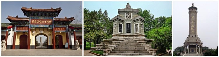 紀(jì)念塔前廣場兩側(cè)對稱建有新四軍副軍長兼山東軍區(qū)副司令員羅炳輝,德國共產(chǎn)、太平洋學(xué)會記者漢斯·希伯等八座造型各異的烈士陵墓,高均在8米以上。東西墓區(qū)南端分別為羅炳輝烈士戎裝石像亭和華東野戰(zhàn)軍副參謀長張元壽等四位著名烈士半身石像亭。